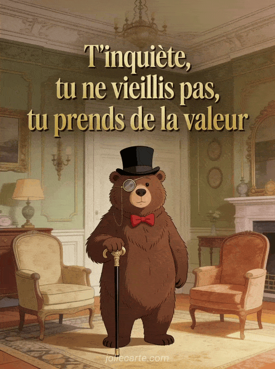 T'inquiète, tu ne vieillis pas, tu prends de la valeur l'humour est le meilleur des cadeaux