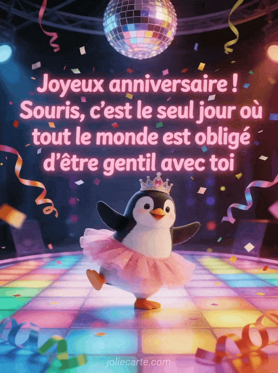 Joyeux anniversaire ! Souris, c'est le seul jour oĂč tout le monde est obligĂ© d'ĂȘtre gentil avec toi un gif joyeux anniversaire humour pour femme