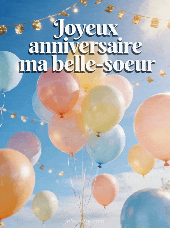 CĂ©lĂ©brez l'anniversaire de votre belle-sĆur avec cette carte pleine de couleurs et de bonne humeur. Les ballons pastel et la lumiĂšre dorĂ©e apportent une touche festive parfaite pour lui souhaiter une merveilleuse journĂ©e.