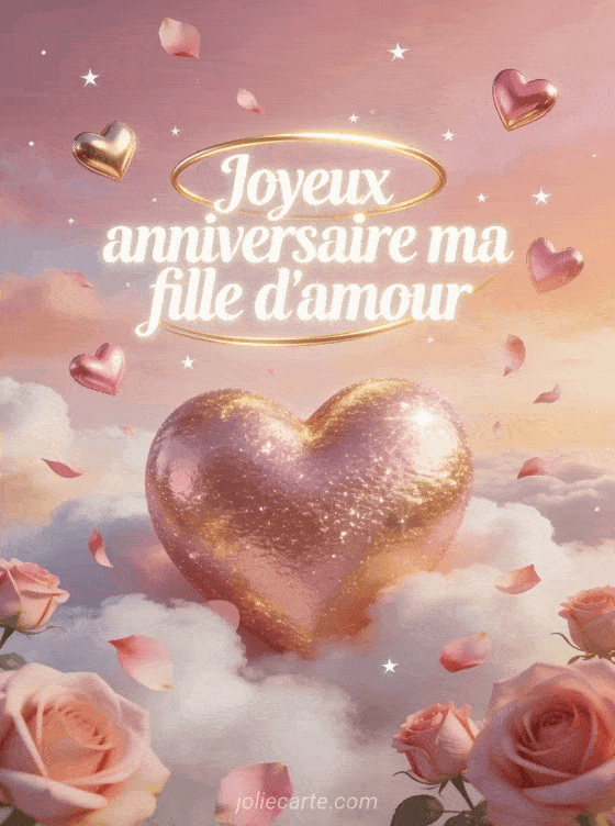CĂ©lĂ©brez votre fille d'amour avec cette carte d'anniversaire romantique et scintillante. Des cĆurs dorĂ©s pour lui dire combien elle est aimĂ©e. Voyez aussi une carte Ă©lĂ©gante, une carte cheval ou un anniversaire fleuri.
