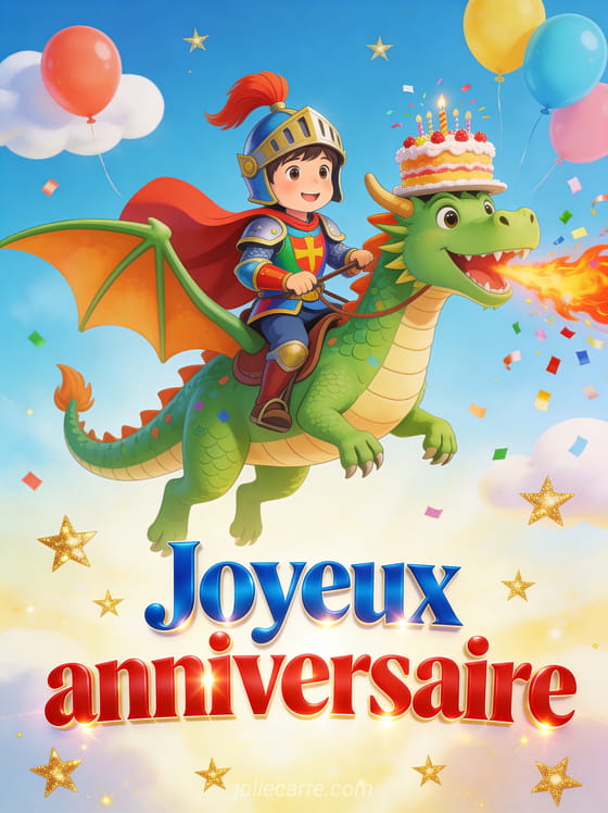 Souhaitez un joyeux anniversaire à un petit garçon avec cette carte pleine d'aventure et de magie. Découvrez aussi un texte anniversaire bébé, un joyeux anniversaire bébé en gif ou un texte humoristique anniversaire enfant.