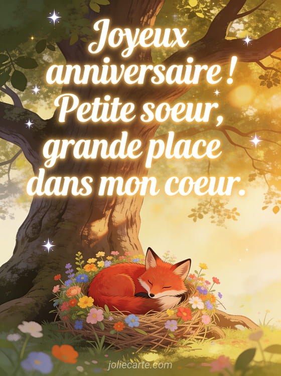 Offrez un texte touchant de joyeux anniversaire à votre petite soeur, celle qui a une grande place dans votre coeur. Pour d'autres idées, découvrez un joyeux anniversaire message à ma soeur, une image joyeux anniversaire ma soeur ou un message de joyeux anniversaire à ma petite soeur.