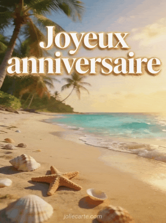 Souhaitez un joyeux anniversaire avec cette image de plage tropicale au sable doré et à l'eau turquoise. Découvrez aussi des images joyeux anniversaire, un joyeux anniversaire voiture ou je te souhaite un joyeux anniversaire.