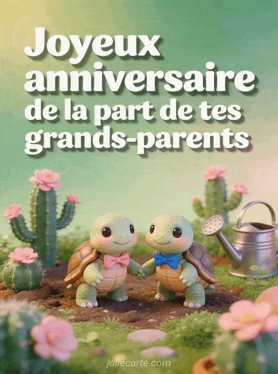 Envoyez un joyeux anniversaire de la part des grands-parents avec ces tortues adorables. Voir aussi un texte d'anniversaire, une carte pour petite-fille ou un gif d'anniversaire.