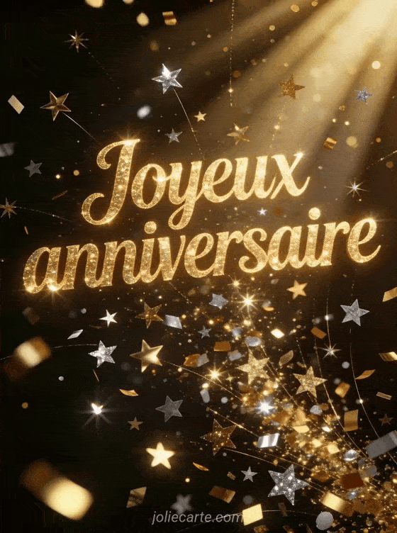Illuminez cette journée spéciale avec cette image joyeux anniversaire qui brille, scintillante et dorée. Pour encore plus d'éclat, découvrez une carte joyeux anniversaire, un joyeux anniversaire branché ou un joyeux anniversaire bouquet de mimosa.
