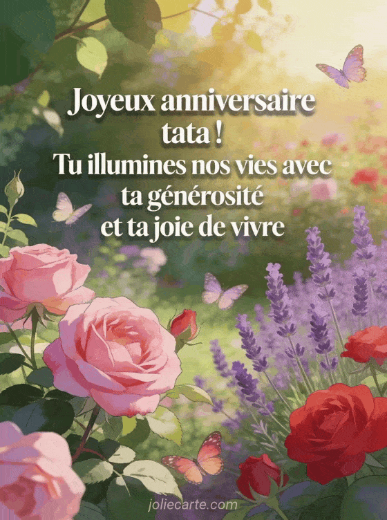 Offrez un joyeux anniversaire à votre tata avec un texte touchant qui exprime toute votre affection. Pour compléter votre attention, découvrez aussi un joyeux anniversaire tatie, un joyeux anniversaire ma tante ou un message anniversaire pour sa tante.