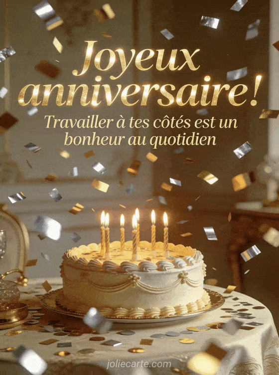 Offrez un message anniversaire collègue plein de chaleur pour marquer cette journée spéciale au bureau. Pour d'autres attentions, découvrez comment souhaiter joyeux anniversaire à sa collègue, une carte joyeux anniversaire d'une collègue de travail ou un joyeux anniversaire ma collègue de travail.