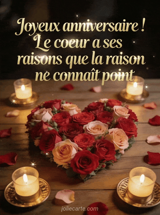 Joyeux anniversaire ! Le coeur a ses raisons que la raison ne connait point un message anniversaire sms pour envoyer de l'amour par texto