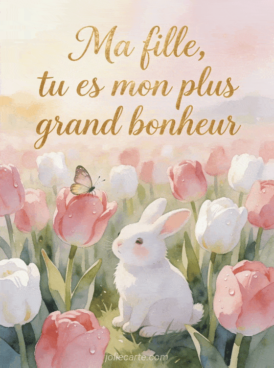 Touchez le cĆur de votre fille avec ce message d'anniversaire plein d'amour. Un lapin dans les tulipes pour un moment de tendresse pure. Voyez aussi un texte lumineux, une carte gratuite ou un anniversaire cosy.