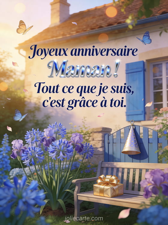 Joyeux anniversaire Maman ! Tout ce que je suis, c'est grĂące Ă toi. un message pour souhaiter un joyeux anniversaire Ă votre maman