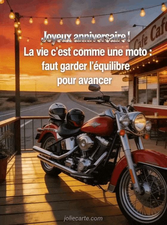 Joyeux anniversaire ! La vie c'est comme une moto : faut garder l'équilibre pour avancer un joyeux anniversaire moto et humour pour homme