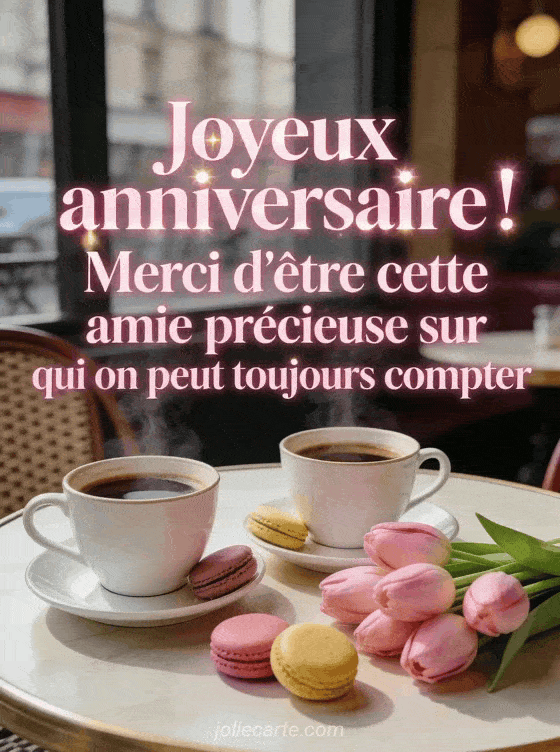 Joyeux anniversaire ! Merci d'ĂȘtre cette amie prĂ©cieuse sur qui on peut toujours compter un petit mot d'anniversaire plein de gratitude pour une amie