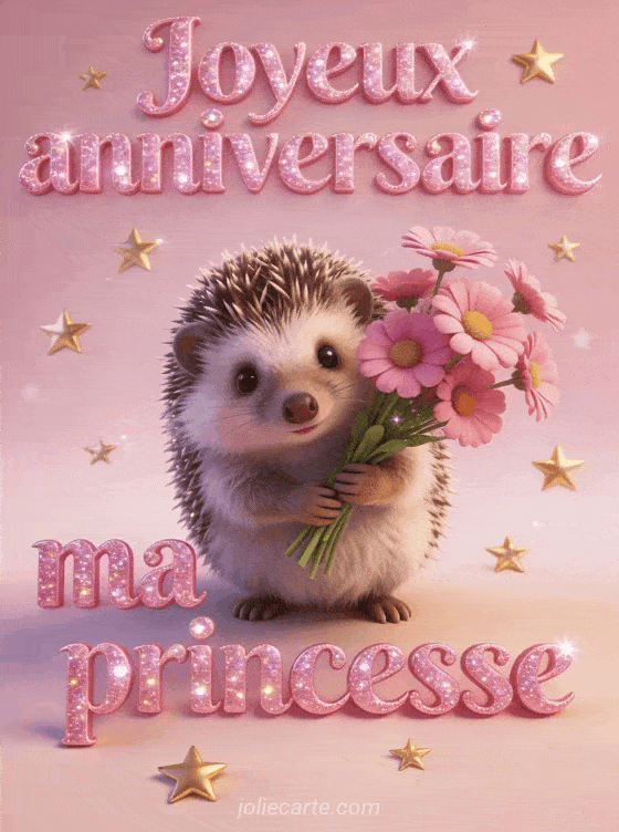 Joyeux anniversaire ma princesse un petit hérisson et des fleurs pour votre petite-fille