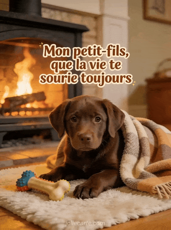 Réchauffez l'anniversaire de votre petit-fils avec ce poème au chiot labrador devant la cheminée. Ajoutez un bon anniversaire nature, un texte d'aventure ou une lettre nostalgique.