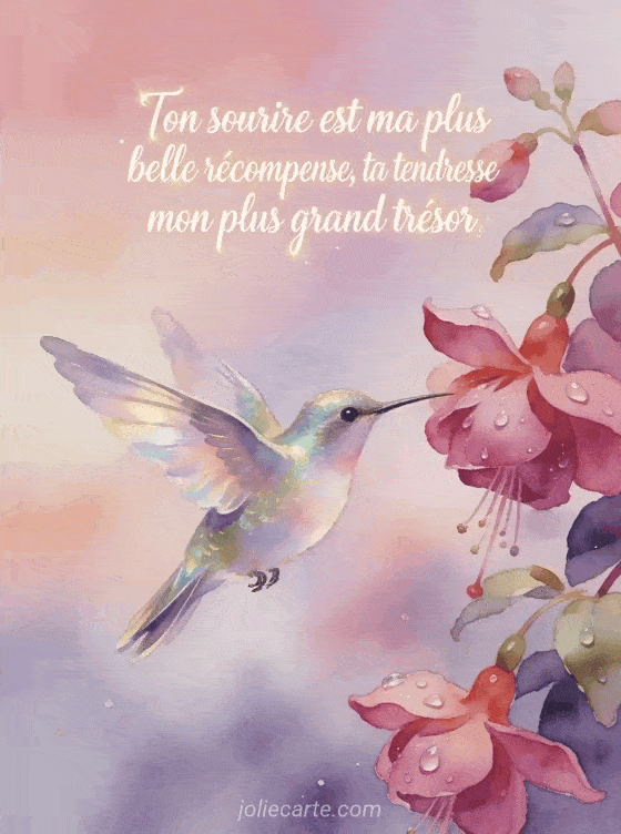 Partagez ce poème d'anniversaire avec votre maman, illustré d'un colibri irisé parmi les fuchsias. Voir aussi une image d'anniversaire, un anniversaire courageux ou une carte avec texte.