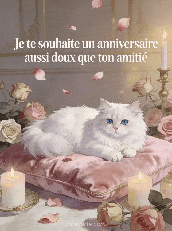 Souhaitez un anniversaire plein de douceur à votre amie avec cette carte raffinée et son adorable chat. Découvrez aussi un poème anniversaire amie, une carte anniversaire amie proche ou un proverbe anniversaire amitié.