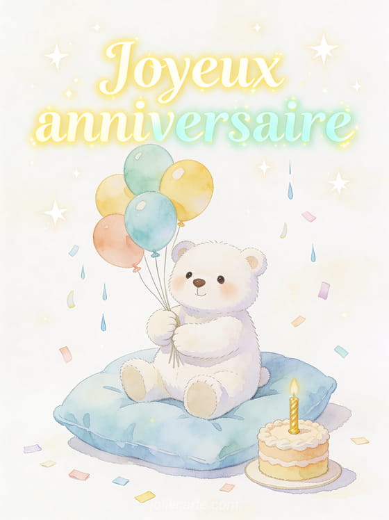 Souhaitez un joyeux anniversaire à un bébé avec cette carte tendre et lumineuse. Découvrez aussi un joyeux anniversaire mon bébé grandit en sagesse, une carte pour souhaiter joyeux anniversaire à son bébé ou un bon anniversaire mon bébé.