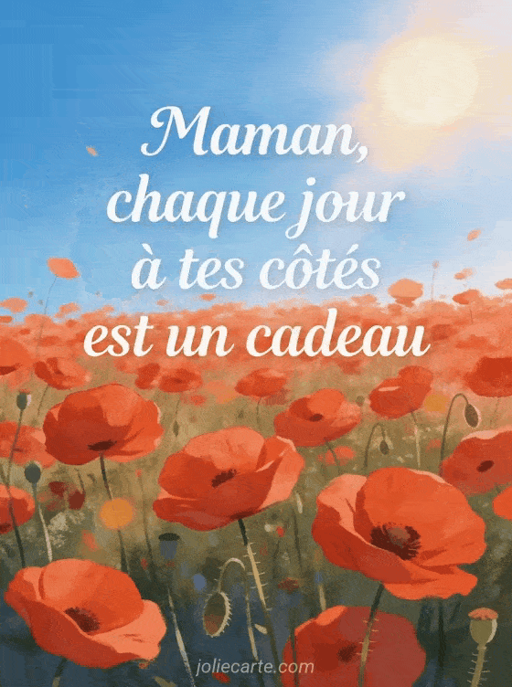Offrez ce texte d'anniversaire sincÚre à votre maman, illustré par un champ de coquelicots baigné de soleil. Voir aussi un message touchant, une carte illustrée ou un anniversaire élégant.
