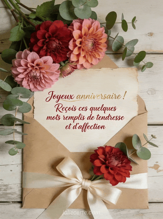 Joyeux anniversaire ! Reçois ces quelques mots remplis de tendresse un texte de carte anniversaire plein d'affection