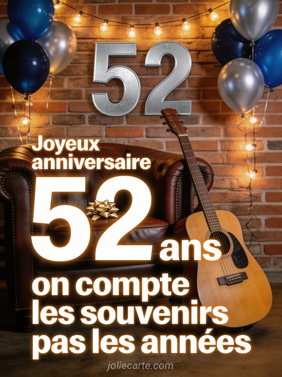 Joyeux anniversaire 52 ans - Homme Joyeux anniversaire Joyeux anniversaire 52 ans - Dedicace Joyeux anniversaire Joyeux anniversaire 52 ans - Texte femme Joyeux anniversaire 52 ans place à la fête ! Joyeux anniversaire 52 ans - Femme Joyeux anniversaire