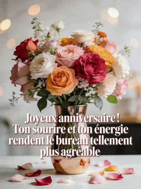 Joyeux anniversaire ! Ton sourire et ton énergie rendent le bureau tellement plus agréable un texte attentionné pour le joyeux anniversaire d'une collègue