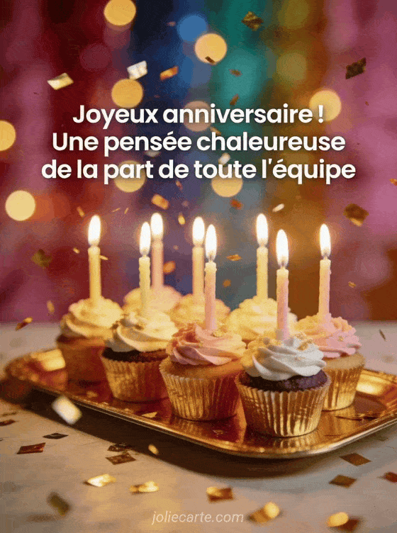 Offrez un texte joyeux anniversaire collègue au nom de toute l'équipe pour une attention chaleureuse et collective. Découvrez aussi un message de joyeux anniversaire collègue, un message joyeux anniversaire à un collègue ou un message joyeux anniversaire collègue de travail.