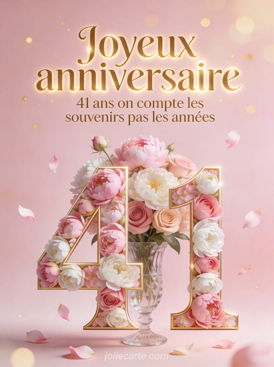 Joyeux anniversaire 41 ans - Homme humour T'inquiète, tu fais toujours plus jeune… de loin. Joyeux anniversaire Joyeux anniversaire 41 ans - Texte humour Joyeux anniversaire 41 ans officiellement vintage mais toujours fonctionnel Joyeux anniversaire 41 ans - Texte femme Joyeux anniversaire 41 ans place à la fête ! Joyeux anniversaire 41 ans - Femme Joyeux anniversaire