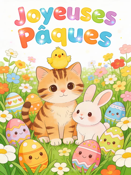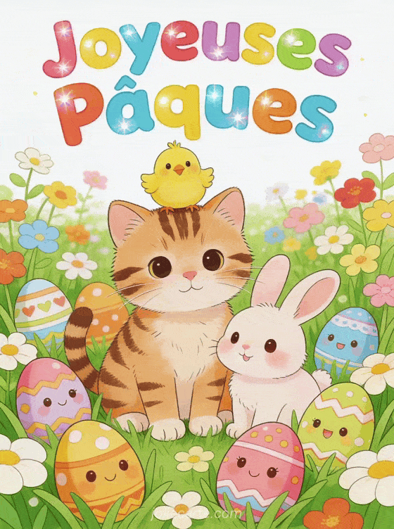 Partagez cette adorable image d'animaux de PĂąques qui ravira petits et grands en cette journĂ©e de fĂȘte. Retrouvez aussi une vidĂ©o de lapin de PĂąques, un lapin de PĂąques mignon ou des voeux pour PĂąques gratuits.