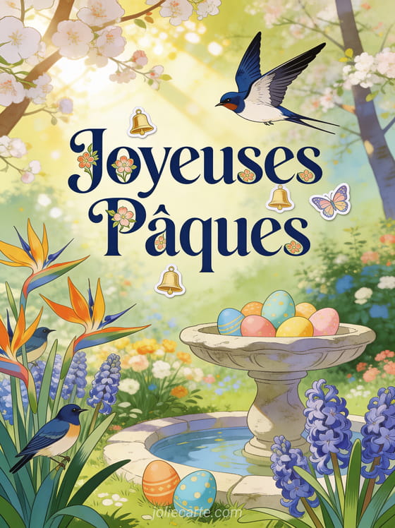 CĂ©lĂ©brez la fĂȘte de PĂąques en envoyant cette carte raffinĂ©e Ă vos proches pour partager la joie du printemps. DĂ©couvrez aussi des voeux de PĂąques, une carte joyeuses PĂąques gratuite ou un message de joyeuses PĂąques.