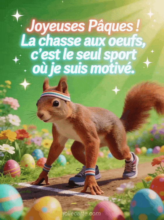 Joyeuses PĂąques ! La chasse aux oeufs, c'est le seul sport oĂč je suis motivĂ©. une carte PĂąques humour pour les champions de la chasse aux oeufs