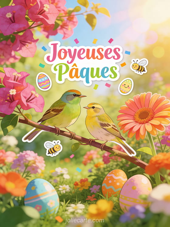 Partagez ces cartes de Pùques gratuites sur Facebook pour envoyer vos voeux printaniers à tous vos amis en un clic. Découvrez aussi une carte virtuelle animée joyeuses Pùques, une jolie carte de Pùques ou une carte postale ancienne joyeuses Pùques.