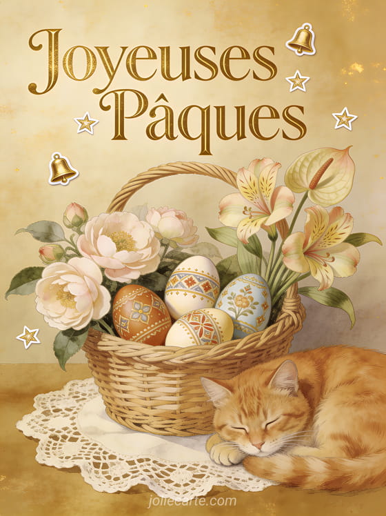 Retrouvez le charme des cartes postales anciennes de joyeuses Pùques avec ce visuel au style rétro et nostalgique. Découvrez aussi une jolie carte joyeuses Pùques, un message de Pùques à envoyer ou des voeux de joyeuses Pùques.