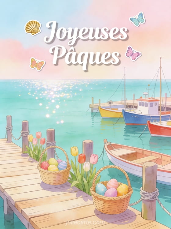 Envoyez une carte pour Pùques pleine de joie et de couleurs à vos proches. Pour varier les plaisirs, découvrez un modÚle de carte pour Pùques, une carte Pùques dromadaire ou des voeux de Pùques gratuits.