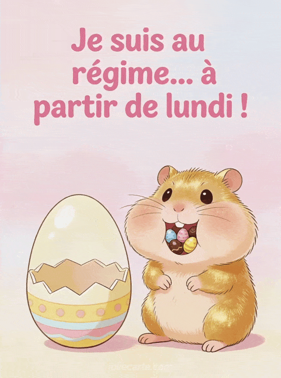 Je suis au régime... à partir de lundi ! un hamster qui profite de Pùques sans culpabiliser