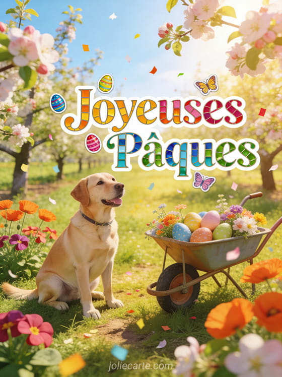 Partagez cette jolie carte de joyeuses PĂąques pour cĂ©lĂ©brer cette fĂȘte avec couleur et bonne humeur. DĂ©couvrez aussi un message de PĂąques Ă envoyer, des voeux de joyeuses PĂąques ou une carte virtuelle gratuite PĂąques.