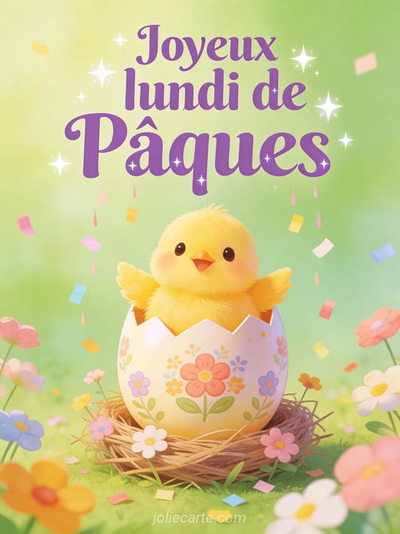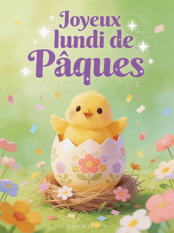 Envoyez un joyeux lundi de PĂąques Ă vos proches avec cette carte festive pour prolonger la magie des fĂȘtes pascales. Retrouvez aussi une belle image bon week-end de PĂąques, un bon weekend de PĂąques ou un bon dimanche de PĂąques.