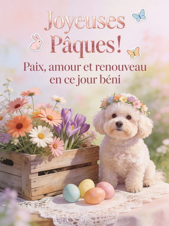 Partagez ce message de joyeuses PĂąques pour transmettre paix, amour et renouveau Ă ceux que vous aimez. DĂ©couvrez aussi une carte bonne fĂȘte de PĂąques, un message pour souhaiter PĂąques ou un texte de carte voeux PĂąques.