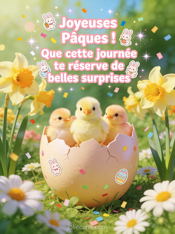 Joyeuses Pùques ! Que cette journée te réserve de belles surprises un message gratuit pour souhaiter de joyeuses Pùques