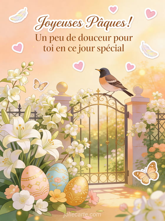 Envoyez ce message de PĂąques plein de douceur pour marquer cette journĂ©e spĂ©ciale avec tendresse et poĂ©sie. DĂ©couvrez aussi des voeux bonne fĂȘte de PĂąques, une carte virtuelle PĂąques ou une carte joyeuses fĂȘtes de PĂąques.
