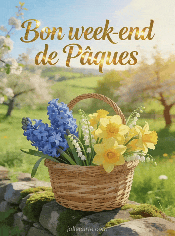 Partagez ces photos de bon week-end de PĂąques pour offrir une ambiance champĂȘtre et printaniĂšre Ă vos proches. DĂ©couvrez aussi un bon samedi de PĂąques, une image de bon week-end de PĂąques ou une carte du lundi de PĂąques.