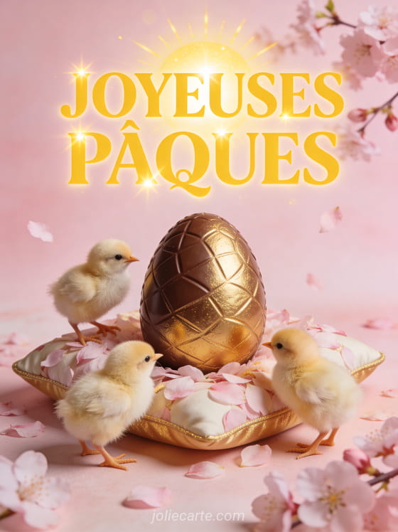 Partagez cette image « Joyeuses PĂąques » avec ses adorables poussins et leur Ćuf en chocolat. Voyez aussi des images de PĂąques, une carte poule de PĂąques ou une carte PĂąques.