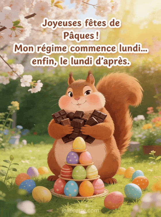 Joyeuses fĂȘtes de PĂąques ! Mon rĂ©gime commence lundi... enfin, le lundi d'aprĂšs. une image rigolote pour souhaiter de joyeuses fĂȘtes de PĂąques