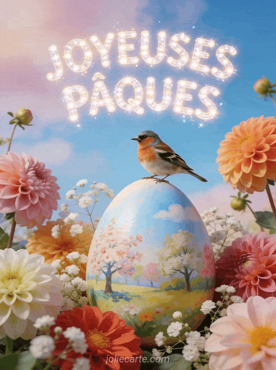 Partagez cette carte « Joyeuses PĂąques » avec son chardonneret et son Ćuf peint pour les fĂȘtes. DĂ©couvrez aussi une image lapin de PĂąques, une carte PĂąques lapin ou une carte souhaiter PĂąques.