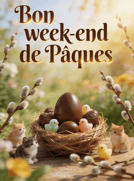 Envoyez cette jolie image pour souhaiter un bon week-end de PĂąques Ă vos proches et partager la magie des fĂȘtes. DĂ©couvrez aussi un joyeux dimanche de PĂąques, une citation du lundi de PĂąques ou une image du lundi de PĂąques.