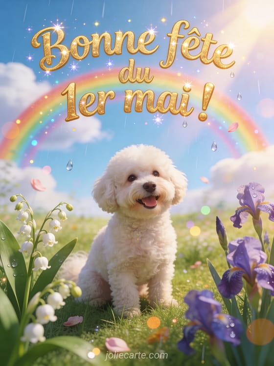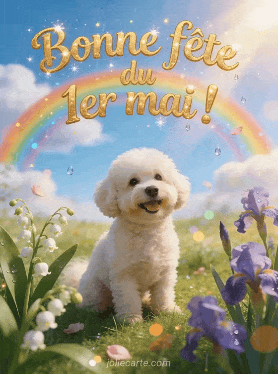 Bonne fĂȘte du 1er mai ! un joli chien pour souhaiter le 1er mai