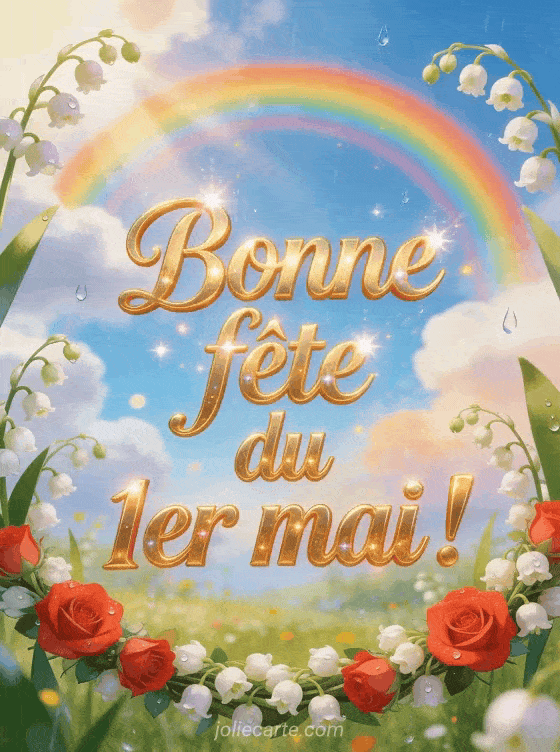 Partagez une animation festive pour le 1er mai et mettez de la joie dans votre message de fĂȘte. Voyez aussi des fleurs 1er mai muguet, une phrase pour le 1er mai ou un cĆur bouquet de muguet.
