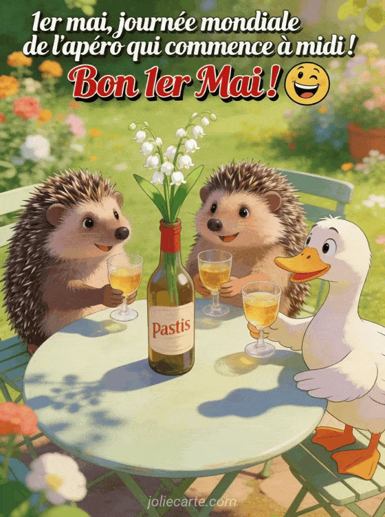 1er mai, journĂ©e mondiale de l'apĂ©ro qui commence Ă midi ! Bon 1er Mai ! un animĂ© rigolo de muguet pour fĂȘter le 1er mai