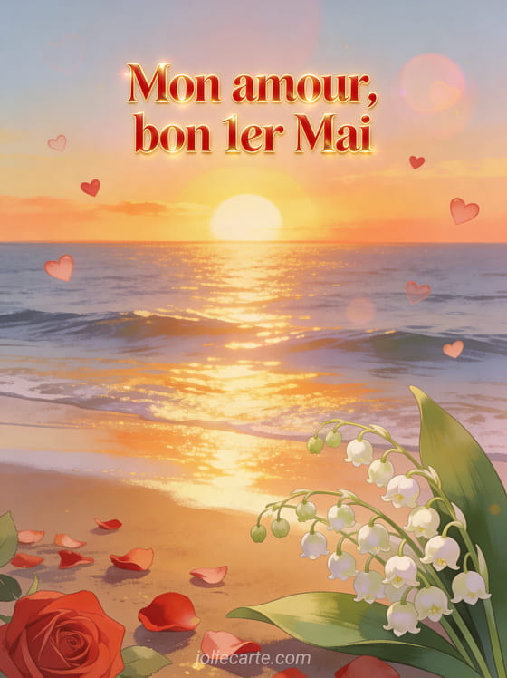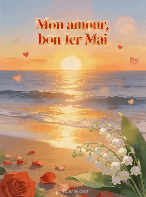 Souhaitez un bon premier mai à votre amour avec un message romantique plein de tendresse et de muguet porte-bonheur. Pour d'autres cartes, découvrez une photo du 1er mai avec un chat adorable, une carte avec un brin de muguet pour toi, ou une carte porte-bonheur.