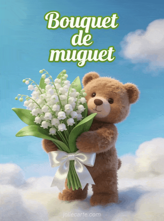 Envoyez cet adorable bouquet de muguet tenu par un ourson en peluche pour porter bonheur avec tendresse. Découvrez aussi des images de muguet, une image muguet humour ou une carte 1er mai.