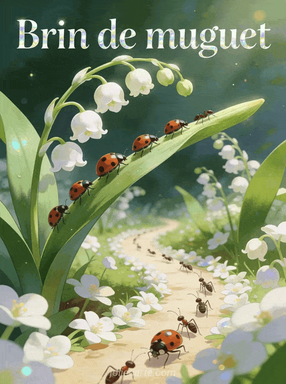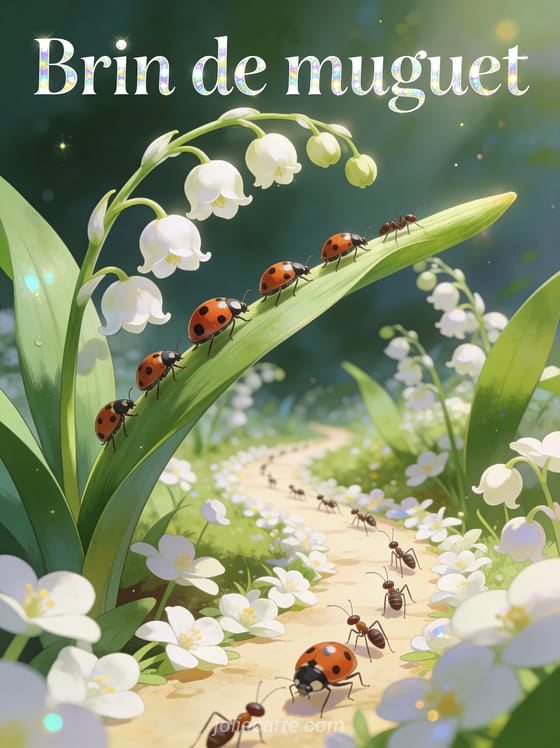 Envoyez cette illustration féérique de coccinelles portant un brin de muguet gĂ©ant, un monde miniature plein de charme. DĂ©couvrez aussi des photos de muguet, une image de muguet ou la fĂȘte du 1er mai.